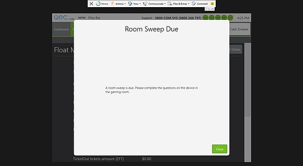 - Helps venues ensure staff enter the gaming room during the room sweep process.